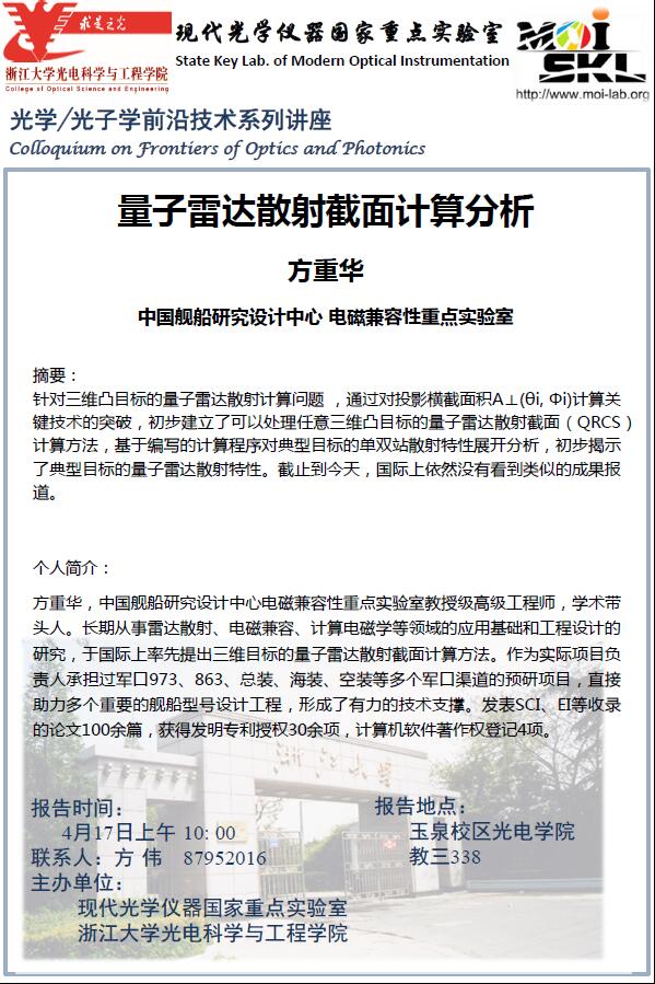 关于中国舰船研究设计中心电磁兼容性重点实验室的方重华博士学术报告的通知