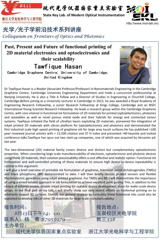 题目:Past, Present and Future of functional printing of 2D material electronics and optoelectronics and their scalability